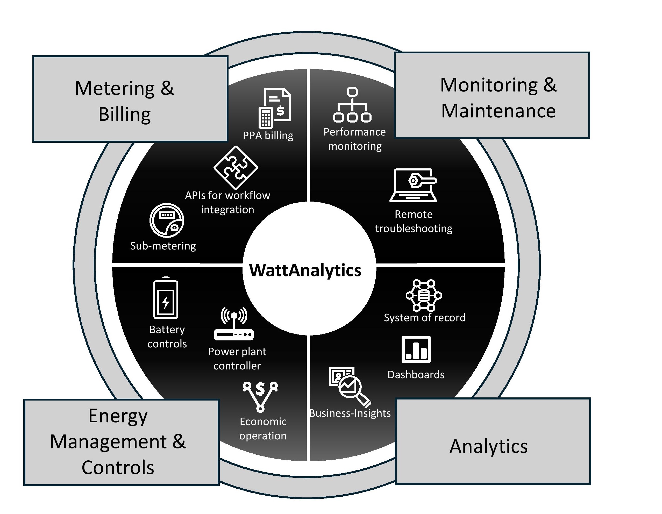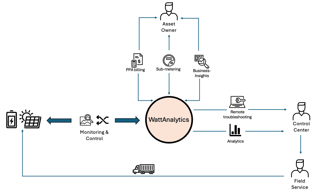 • Backed by a deep history of data with advanced analytics, WattAnalytics is Aattral'’s flagship application for clean energy portfolio management. WattAnalytics enables customers to connect, monitor, control and optimize their grid-edge, energy assets with full visualization dashboards and analytics. WattAnalytics was designed with the ultimate flexibility in mind, enabling energy sellers to easily and accurately calculate and bill almost any unit of energy for mass market and C&I customers. With high-quality, data-driven analytics, WattAnalytics provides actionable insights that can significantly reduce the cost of operating and maintaining your energy assets.